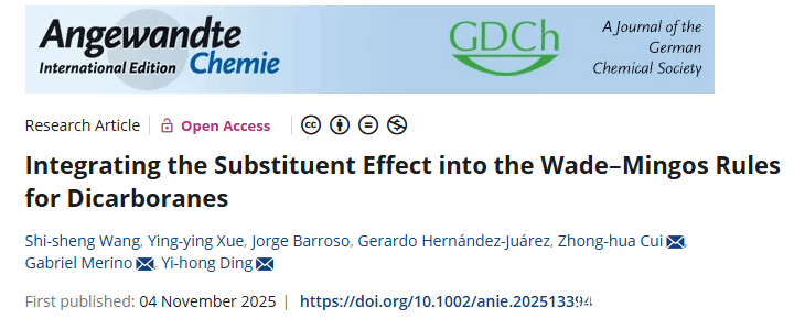 近日,开云网页版页面登录化学与材料工程学院丁益宏教授团队联合吉林大学、墨西哥 Cinvestav-Mérida 大学科研力量,在硼簇化学结构预测领域取得突破性进展。相关研究成果以 “Integrating the Substituent Effect into the Wade–Mingos Rules for Dicarboranes” 为题,发表于国际顶级期刊《Angewandte Chemie International Edition》(DOI:10.1002/anie.202513394)。