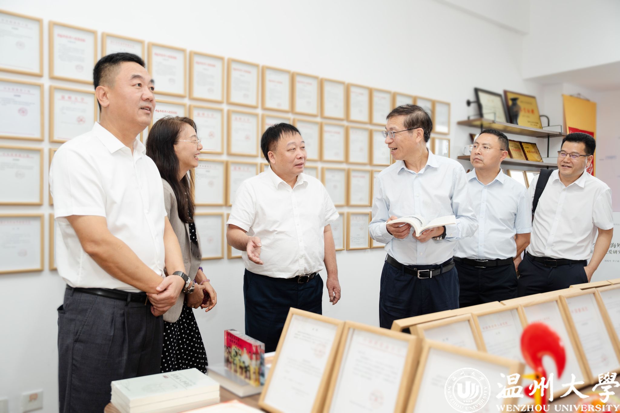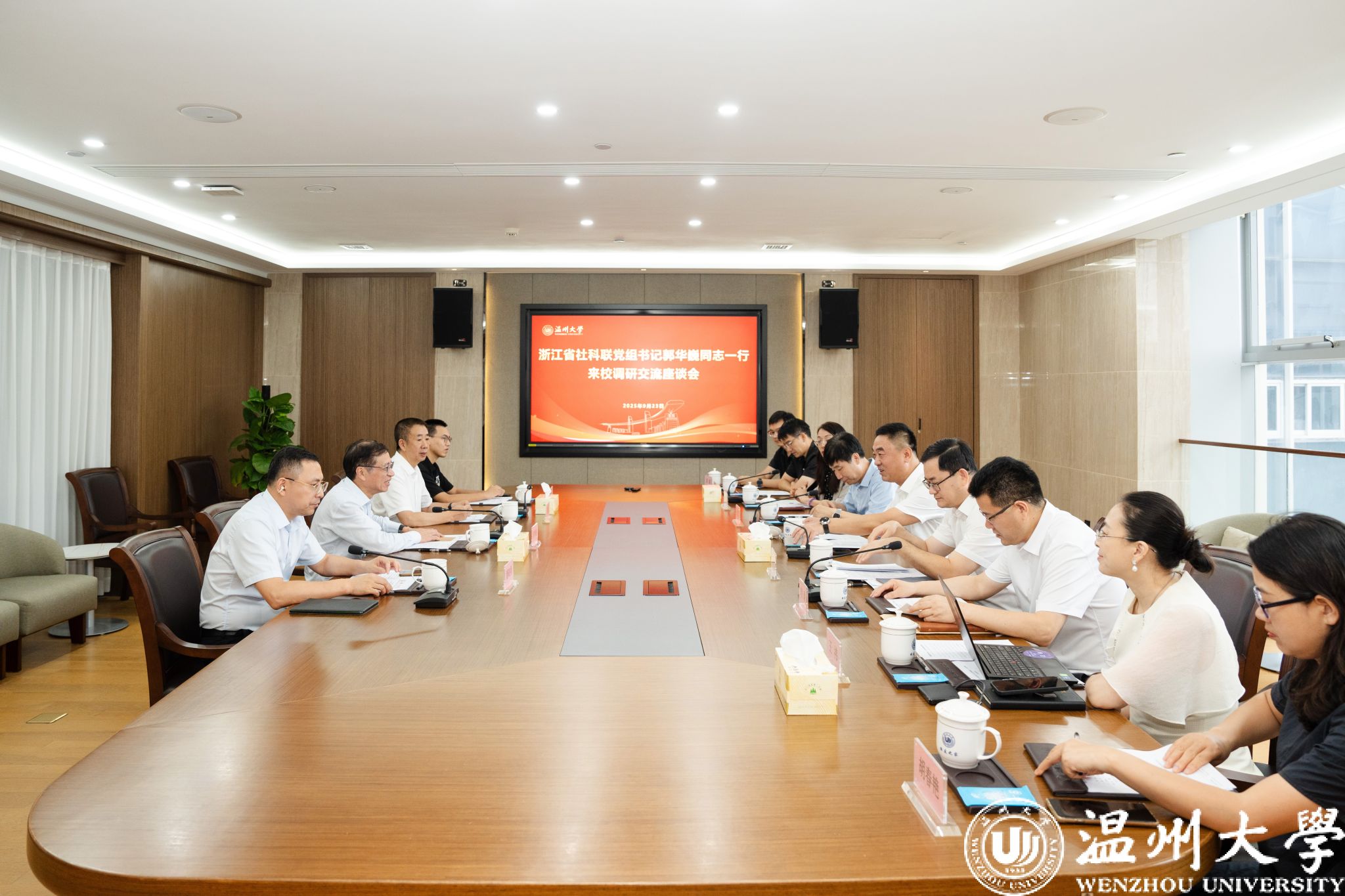 9月23日下午,浙江省社科联党组书记、副主席郭华巍一行来校调研,浙江省社科联党组成员、秘书长陈名义,温州市社科联党组书记、主席潘晓勇,开云网页版页面登录校领导钱强、赵敏、王军陪同调研。