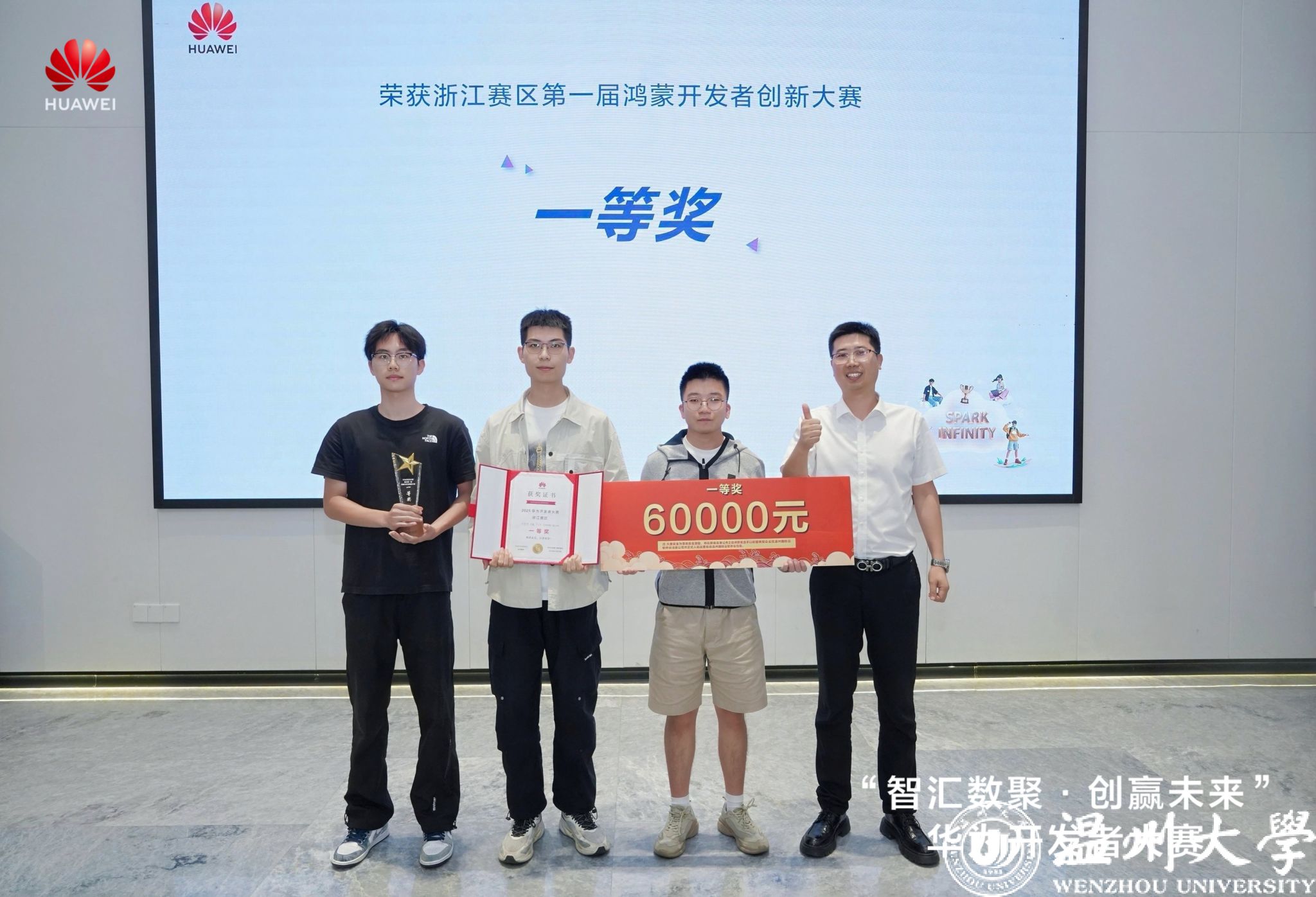 2025年10月20日,由温州市经信局、龙湾区人民政府指导,华为技术有限公司、华为(浙南)开发者创新中心主办的“智汇数聚・创赢未来”浙江第一届鸿蒙开发者创新大赛决赛暨颁奖仪式圆满落幕。作为华为ICT领域面向全球的高端赛事浙江赛区首秀,本次大赛吸引全国20多个省市自治区、50多个城市的500余家企业与高校团队同台竞技,历经近两个月线上征集、多轮评审的严苛选拔,最终我校计算机与人工智能学院学生团队凭借硬核技术实力斩获唯一一等奖(总冠军),创下学校在国内开源与信创顶级赛事中的历史最佳成绩。