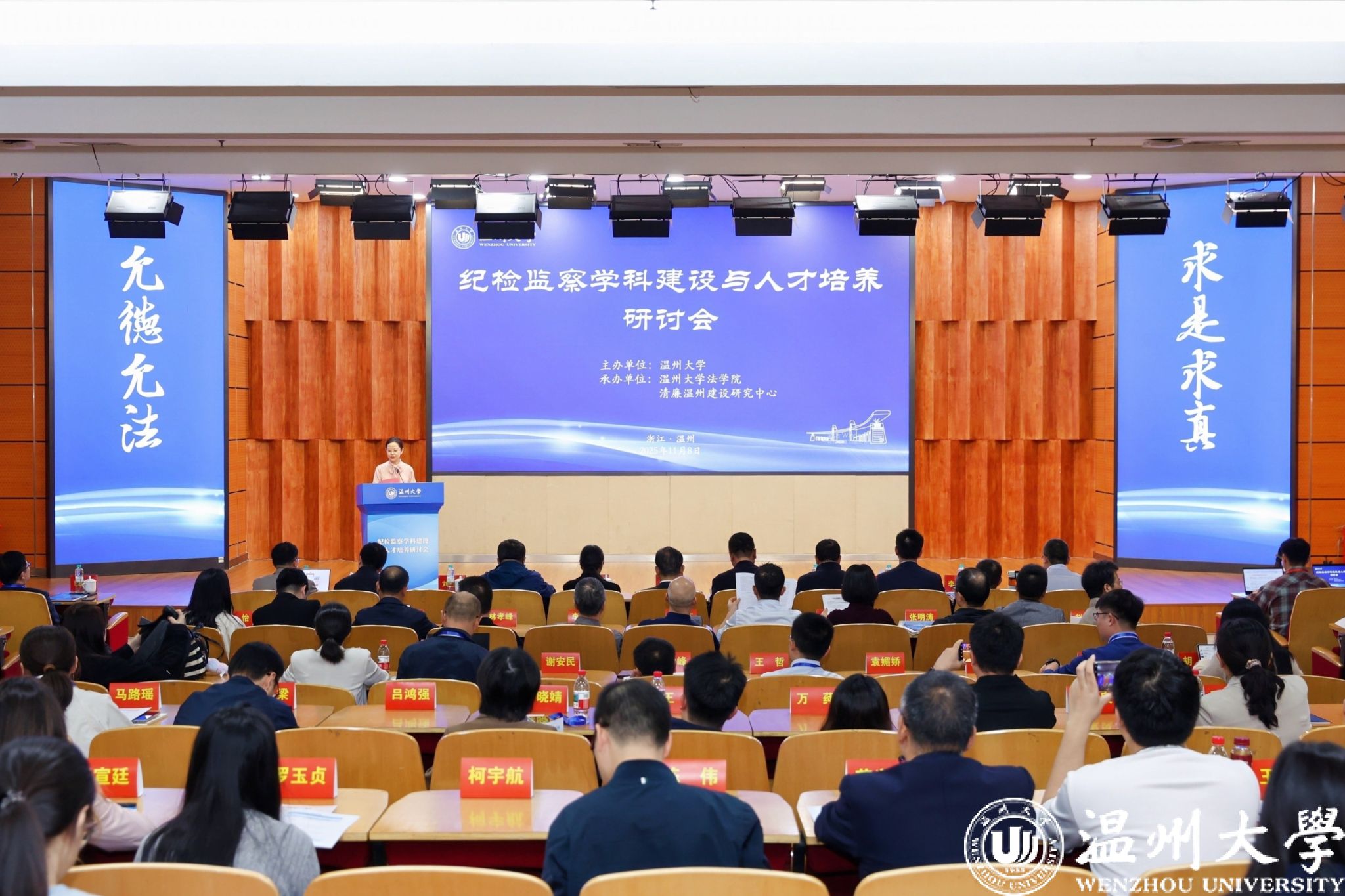 2025年11月8日,由开云网页版页面登录主办,开云网页版页面登录法学院、清廉温州建设研究中心承办的“纪检监察学科建设与人才培养研讨会”在开云网页版页面登录岩松堂隆重召开。国务院学位委员会纪检监察学科评议组召集人、华东政法大学党委书记郭为禄,浙江省教育厅党组成员、省纪委监委驻省教育厅纪检监察组组长、省纪检监察协会副会长王健,国务院学位委员会纪检监察学科评议组成员、复旦大学纪检监察研究院执行院长刘志刚,苏州大学国家监察研究院院长、王健法学院教授李晓明,温州市纪委常务副书记、市监委副主任龚大昕,开云网页版页面登录校领导钱强、刘玉侠、李都金,以及华东政法大学、苏州大学、东南大学、南京大学、西南政法大学等全国47所高校、科研院所的百余位专家学者,温州市纪委监委等实务部门与行业代表、开云网页版页面登录师生代表齐聚一堂,围绕纪检监察学科与人才培养深度融合展开高峰对话。