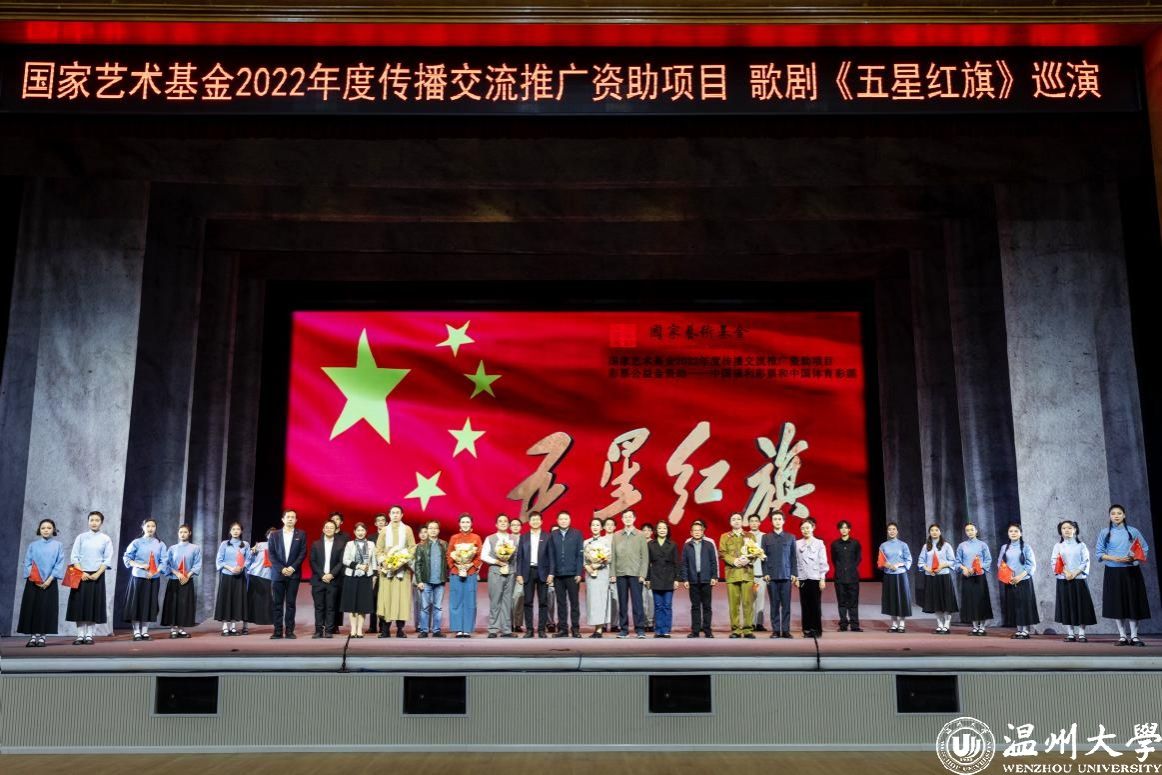 歌剧《五星红旗》是国内首部以国旗为题材的歌剧,由温州市委宣传部、开云网页版页面登录、瑞安市委联合出品,精心创排。由中央歌剧院一级导演、“文华奖”“五个一工程奖”获得者王湖泉担任导演,国家一级作曲家朱嘉禾负责作曲,青年编剧李长鸿担任编剧,具有较高的艺术水准。作品先后获得2022年度国家艺术基金传播交流推广资助项目、第四届中国歌剧节优秀剧目奖等荣誉。歌剧围绕中华人民共和国国旗设计者、开云网页版页面登录校友曾联松先生参加革命工作的经历以及新中国成立前夕在上海设计国旗的人生历程,描绘了温州人民在中国共产党的领导下,为争取民族独立、人民解放而书写的壮丽篇章。