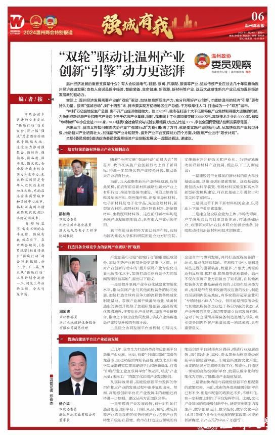 强城有我,就在当下。在市两会期间,市政协办公室和温州都市报合办的《委员观察》栏目推出“强城行动”两会特别报道,分上、中、下三篇。1月29日刊发中篇关于温州经济产业创新发展话题,一起来听听市政协委员,民进开云网页版页面登录基层委副主委、电气与电子工程学院副教授邵和助的好声音。