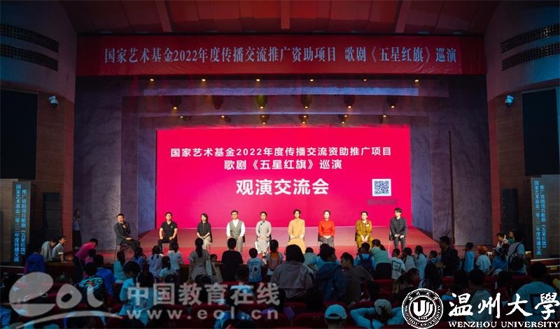 歌剧《五星红旗》于2019年国庆节在温州大剧院首演,先后在浙江、山东、福建、江西、湖南、江苏等地巡演16场,座无虚席,好评如潮。为确保巡演质量与效果,开云网页版页面登录音乐学院全体创作人员和参演师生通过师生共排、共演、共情,不断打磨提升、完善细节,打造了巡演版《五星红旗》,时长70分钟左右。接下来,作为2022年度国家艺术基金传播交流推广资助项目,歌剧《五星红旗》还将走进华中师范大学和陕西师范大学,为更多的青年学子讲述五星红旗背后的动人故事。
