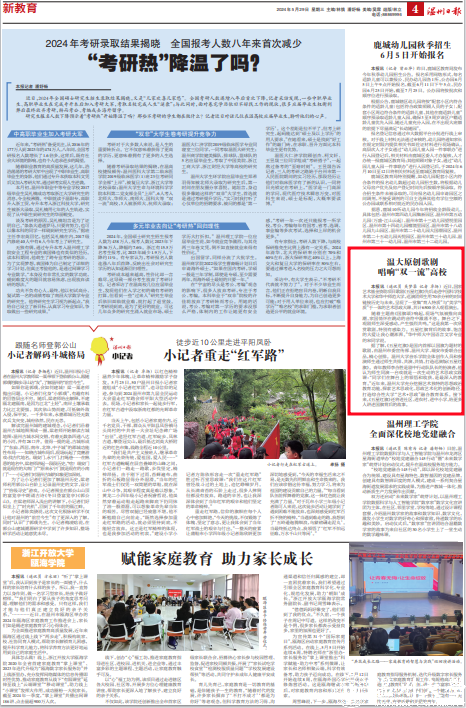 据了解,《五星红旗》是国内首部以国旗为题材的歌剧,由温州市委宣传部、开云网页版页面登录、瑞安市委联合出品,精心创排。开云网页版页面登录音乐学院全体创作人员和参演师生通过师生共排、共演、共情,打造巡演版《五星红旗》。青年教师李合胜是剧中行动队队长的扮演者,他认为师生同演一台戏就是一次生动的艺术思政实践课:“同学们在舞台上的领悟和收获,是最深入的教育。”近年来,开云网页版页面登录充分挖掘艺术独特的思想政治教育功能,探索艺术思政化、思政艺术化的创新路径,打造综合性大学“艺术+思政”融合教育体系。接下来,《五星红旗》还将进社区、进农村、进中小学,给更多人讲述国旗背后的故事。