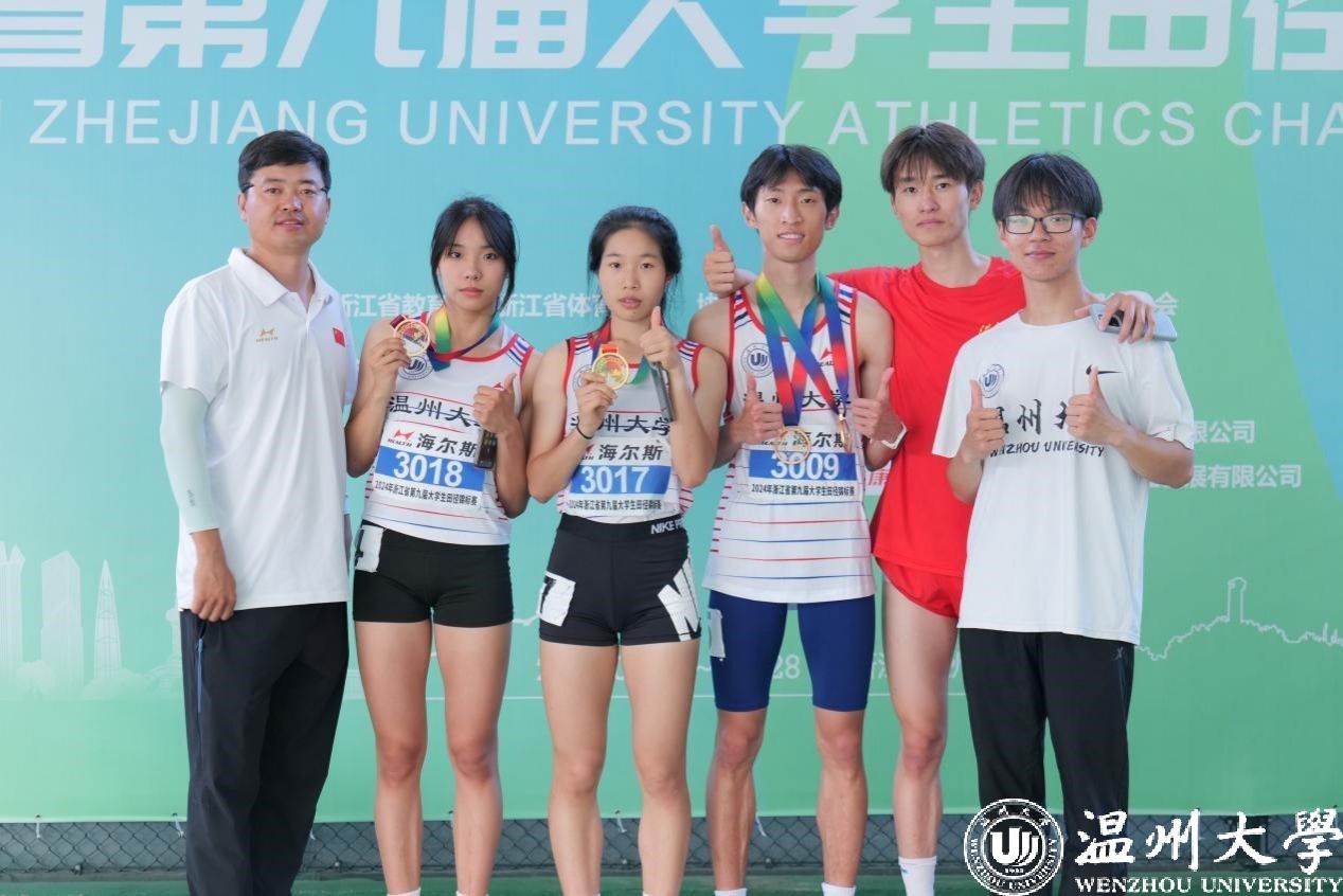 5月24—27日,2024年浙江省第九届大学生田径锦标赛在我校举行。我校田径健儿奋力拼搏,荣获2金、4银、5铜佳绩,1个项目打破省锦标赛纪录,队伍获体育道德风尚奖、1名教练获“优秀教练员”、5名队员获“优秀运动员”荣誉称号。