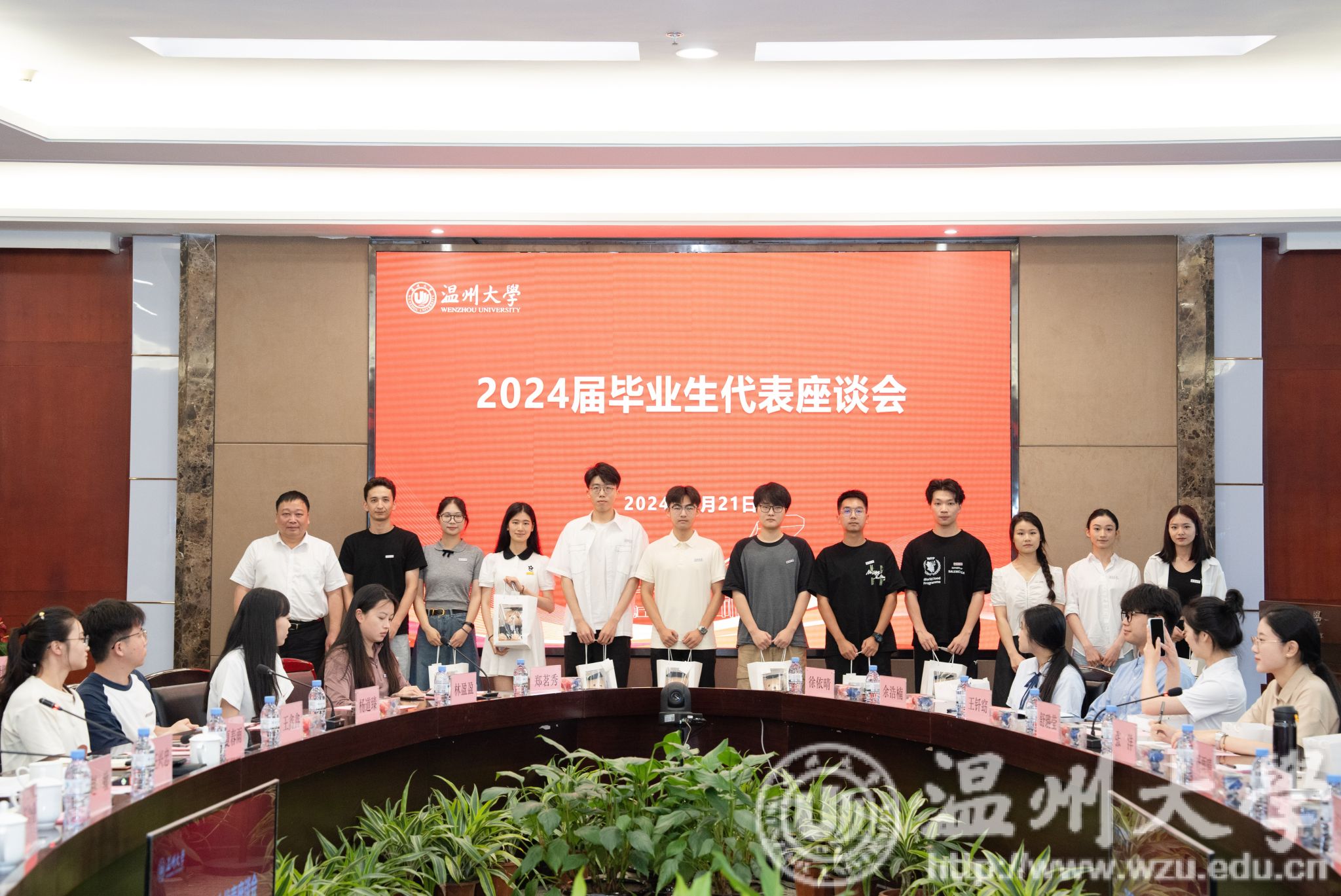 6月21日上午,我校召开2024届毕业生代表座谈会,校长赵敏,副校长王尧骏,党委委员、组织部部长夏春雨,各行政部门负责人以及来自全校各学院优秀毕业生代表参加座谈会。校党委副书记庄兴忠主持。