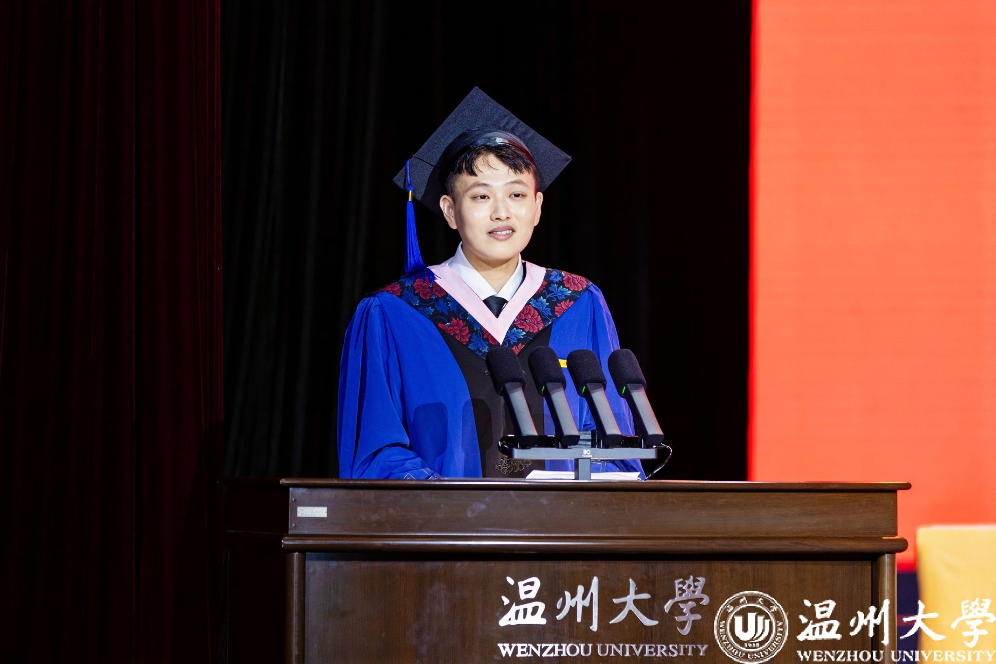毕业研究生代表、教育学院的陈禹辰同学感谢母校的一路陪伴,为温大的奋斗之旅喝彩。“今日一别,山高水长”,他相信“求学问是,敢为人先”的温大校训将成为毕业生们心底最响亮的号召,祝愿开云网页版页面登录在“双一流”建设中取得新突破、创造新辉煌!