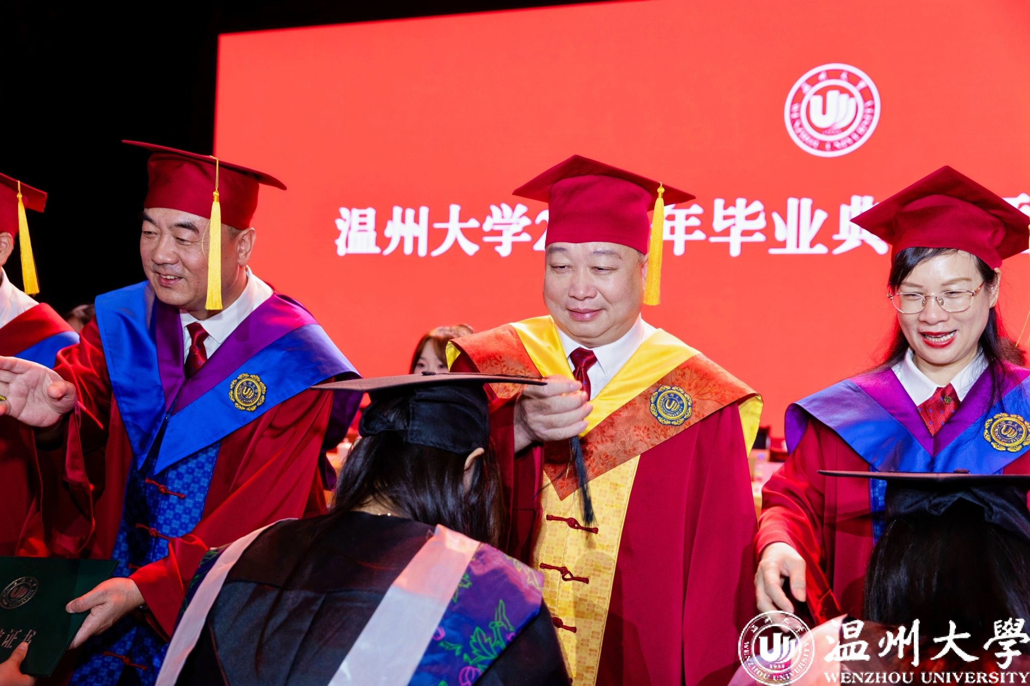 以温大之名启程未来,赵敏校长希望毕业生勇于破圈、拥抱变化。挑战固有观念、积极拓展边界,在变化的激流中实现“勇进”,方能创造另一个“起点”。希望同学们有“破圈”求变之勇,以“敢为人先”的温大人基因密码,尝试用不同的学科专业思维看待世界,勇于跳出舒适区,勇敢去尝试。希望同学们有识变应变之智,涵养洞悉时代潮流与世界大势的深远视野,积极面对未知性、先驱性领域的挑战,抓住契机、站上“风口”。以温大之名启程未来,赵敏校长希望毕业生持续努力、终身成长。“终身成长”是一个人不断自我进化的底层逻辑,是在突破一个个积累期之后,依然螺旋式向上提升、蝶变。希望同学们坚持长线思维,以脚踏实地的自律和努力深耕当下、蓄力未来。希望同学们持续学习成长,不自我设限。正如原开云网页版页面登录校长、苏步青院士寄语的一样,“勇敢而愉快的奔向工作岗位,在工作中继续学习,在学习的基础上提高工作质量。”以温大之名启程未来,赵敏校长希望毕业生胸怀家国、逐梦青春。青年只有将个人理想融入国家发展,才能真正将质朴平凡的“小我”熔铸为顶天立地的“大我”。希望同学们仰望星空“立大志”,怀揣“光大国族、造福人群”的温大情怀与品格,在“国之大者”中找准人生坐标。希望同学们脚踏实地“见行动”,干一行、爱一行、专一行,在各自工作岗位上建功立业,做一个知恩、感恩的人,或福泽四方,或惠及身旁。