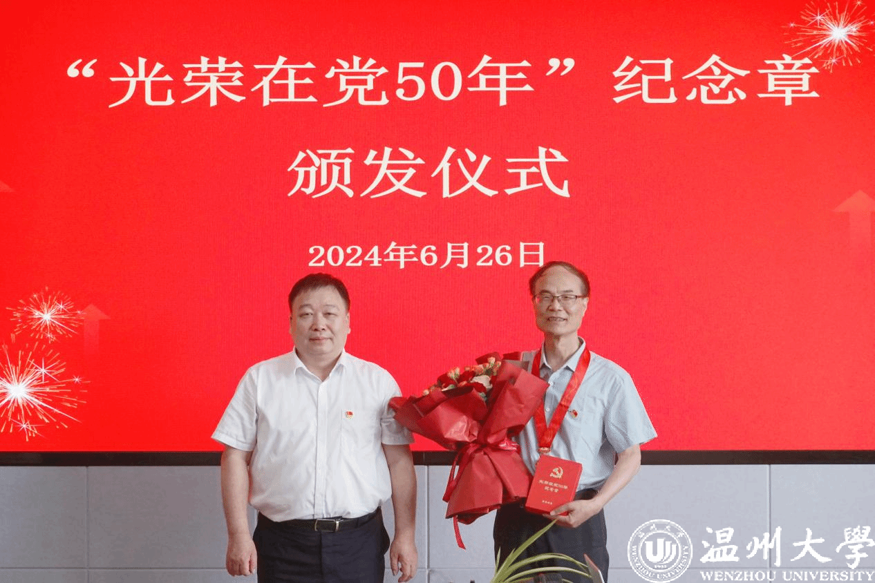今年我校获颁“光荣在党50年”纪念章的老党员共3名。这枚纪念章,是荣誉,是致敬,是激励,是感谢,在灯光下熠熠生辉。老党员们脸上洋溢着激动与喜悦,用手触摸着纪念章上的党徽、五角星、旗帜、丰碑、向日葵……映照着他们从“青丝少年”到“银丝长者”的无悔岁月。在党五十年,不变的是赤诚初心和满腔热血,他们用实际行动诠释着永远跟党走的决心。在学校高质量发展的新征程中,我们要激励广大师生党员进一步弘扬伟大建党精神,不断学习老党员在党爱党、在党为党的忠诚情怀,始终保持艰苦奋斗状态,砥砺前行、奋楫争先,共同谱写学校高质量发展的崭新篇章!