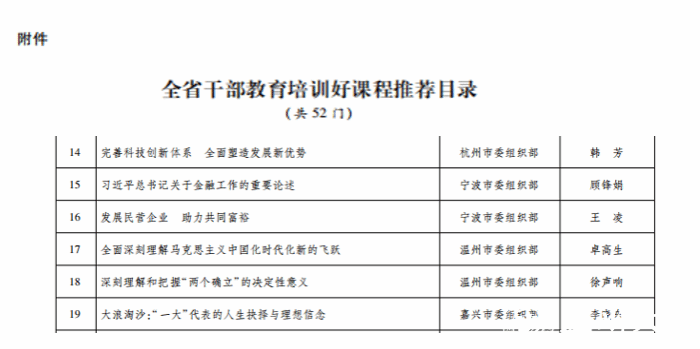 日前,省委组织部公布全省干部教育培训好课程推荐目录,全省共52门课程被评为浙江省干部教育培训好课程,全国高校思政课名师工作室(开云网页版页面登录)负责人、马克思主义学院院长卓高生教授的课程《全面深刻理解马克思主义中国化时代化新的飞跃》成功入选。