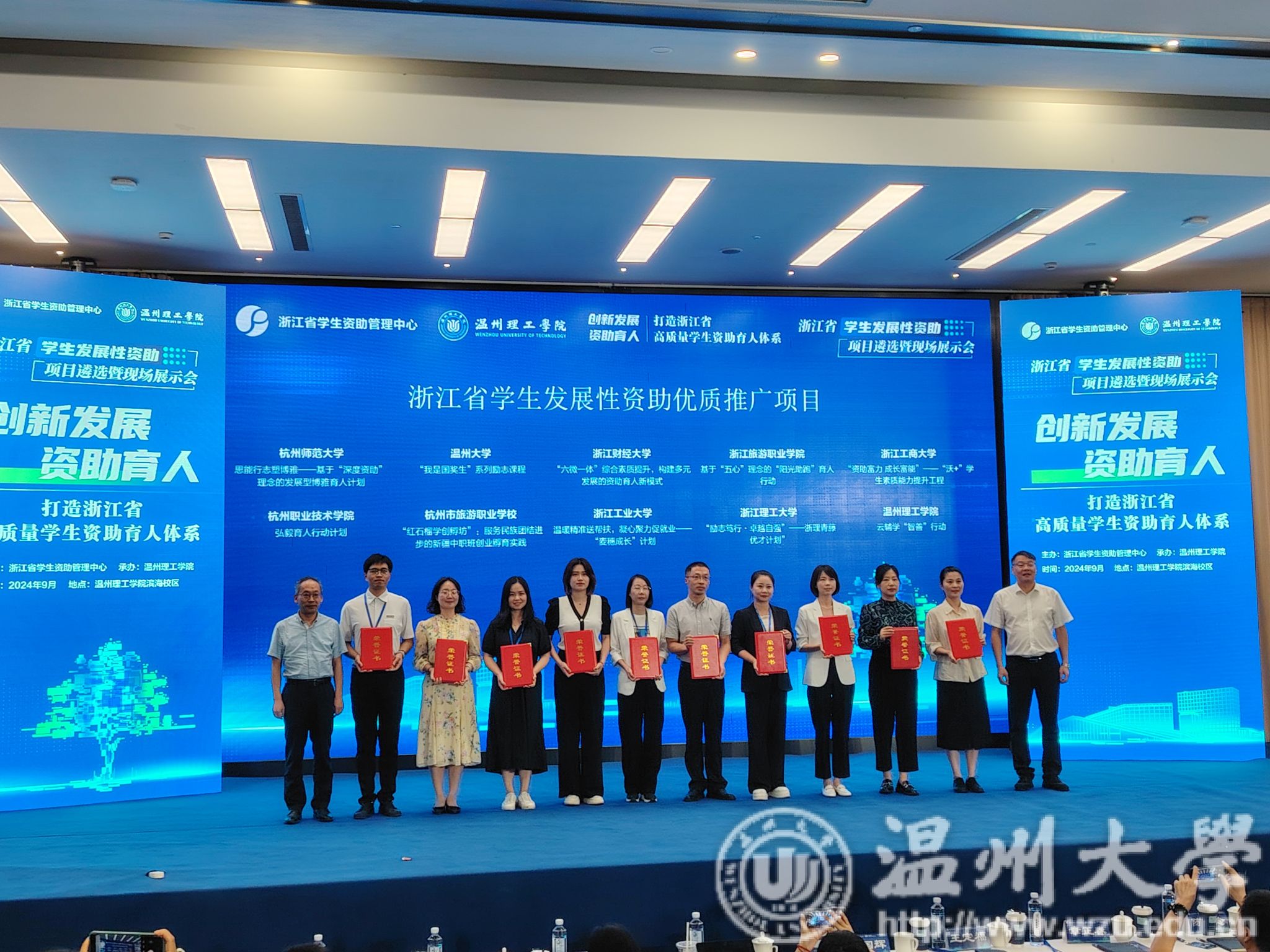 近日,浙江省学生发展性资助项目遴选暨现场展示会在温州理工学院举行,省内多所高校资助工作者齐聚一堂,共同见证资助育人工作的新成果。经激烈角逐,我校“我是国奖生”系列励志课程项目获评浙江省发展性资助优质推广项目称号。