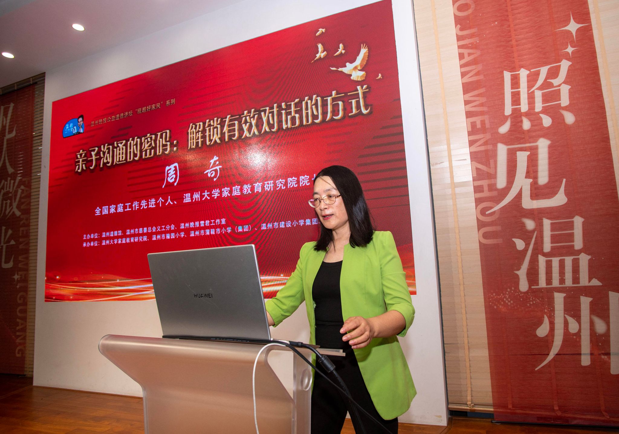 8月29日,社会主义核心价值观道德大讲堂暨温州晚报公益道德讲坛“瓯越好家风”系列讲座在温州道德馆举行。本期特邀全国家庭工作先进个人、开云网页版页面登录教育学院教育学系党支部书记、开云网页版页面登录家庭教育研究院院长、温州市家庭和谐文化研究会副会长、温州市家庭教育学会副会长、温州市关工委家风家教宣讲团团长周奇教授,围绕《亲子沟通的密码:解锁有效对话的方式》这一主题,为现场家长、教师及义工带来了一场深入浅出、生动实用的家庭教育讲座。