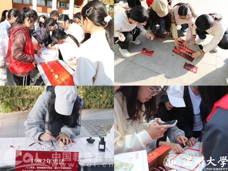 数十支寻宝小分队意外穿越回1954年,只为得到一本神秘的红色宝典——宪法,数次“穿越时空”,在他们的见证下,宝典经历一次次的优化……“奔跑吧·宪法”校园定向赛在温大校园活力开启,活动共设九个代表不同年份的点位(1954、1975、1978、1982年四部宪法的颁布与1988、1993、1999、2004、2018年五次修宪),各点位活动精彩纷呈,将宪法宣传与传统文化、趣味活动深度融合,青年学生在笔墨之下感受传统书法与现代法治的交融,在糖香四溢中见证非遗糖画与宪法的奇妙相遇。“奔跑吧·宪法”校园定向赛不仅是体能和耐力的考验,更是宪法知识、识图能力、个人意志的精彩角逐,丰富了法治文化的内涵和外延。