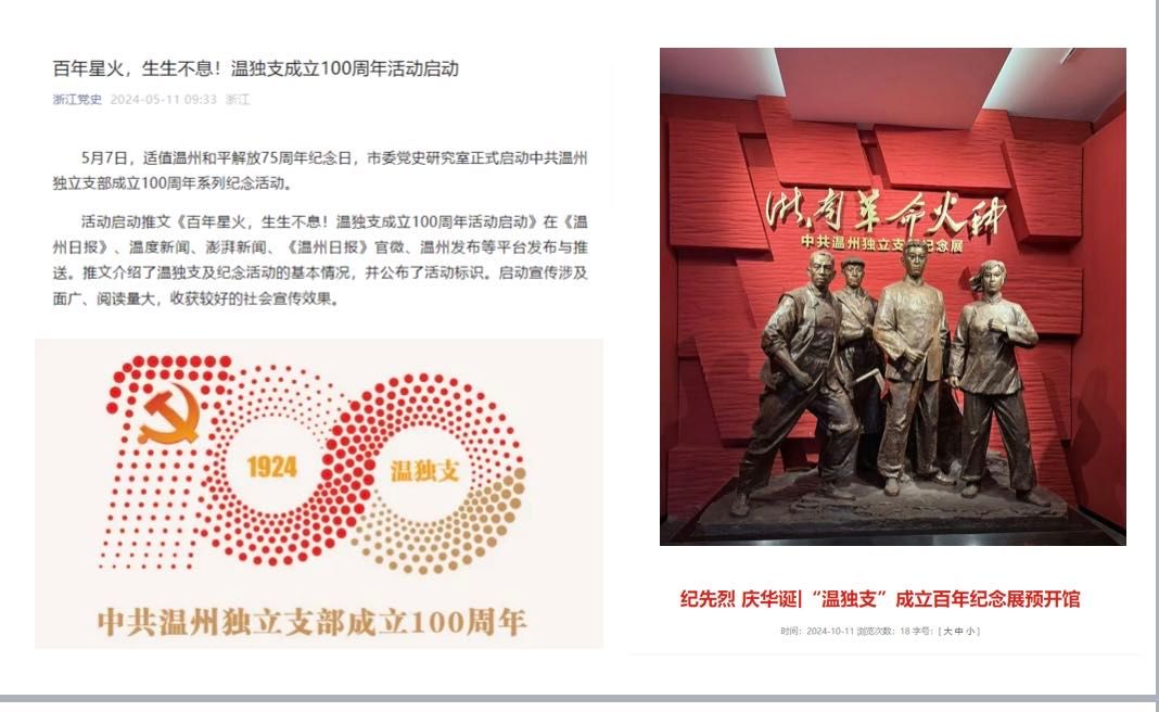 “温独支”是浙南最早的党组织,辉煌三载影响百年,以开放、创新、合作、务实和顽强的斗争精神,传播马克思主义思想,发动国民革命,掀开温州工运、农运、青运、妇运新篇章,为中国工农红军第十三军工农武装革命奠定干部基础和组织基础,在瓯越百年红色历史上留下永恒的丰碑和沉甸甸的精神遗产。