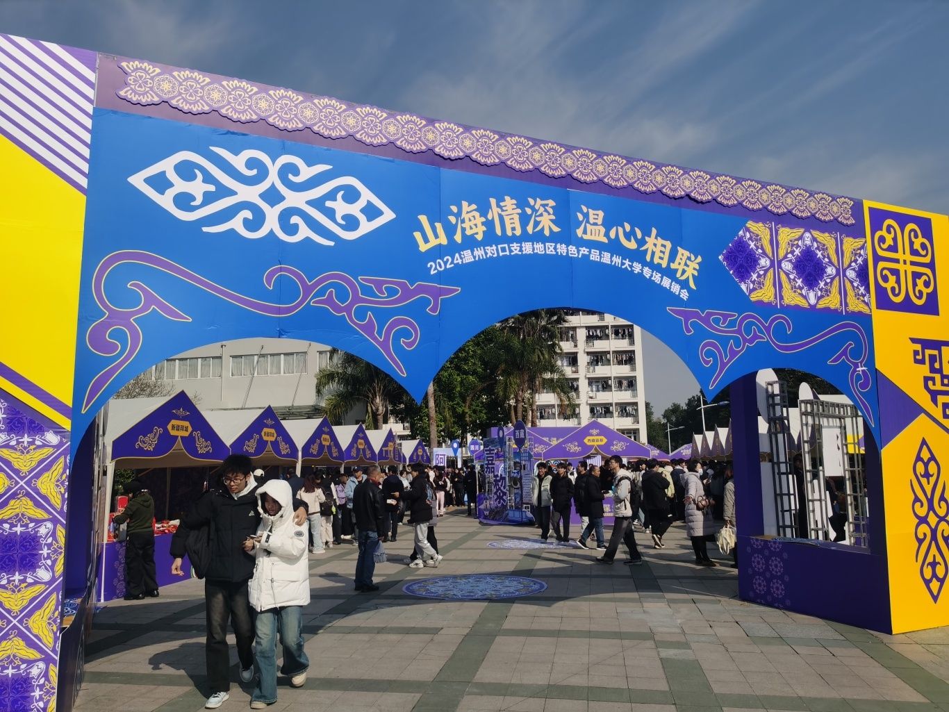2024年12月18日,“山海情深 温心相联”温州对口支援地区特色产品展销会在开云网页版页面登录举办。本次展销会为期3天,汇聚温州对口支援地区新疆、西藏、青海、四川等地特色产品与温州本土特色精品,吸引众多师生及市民参与。