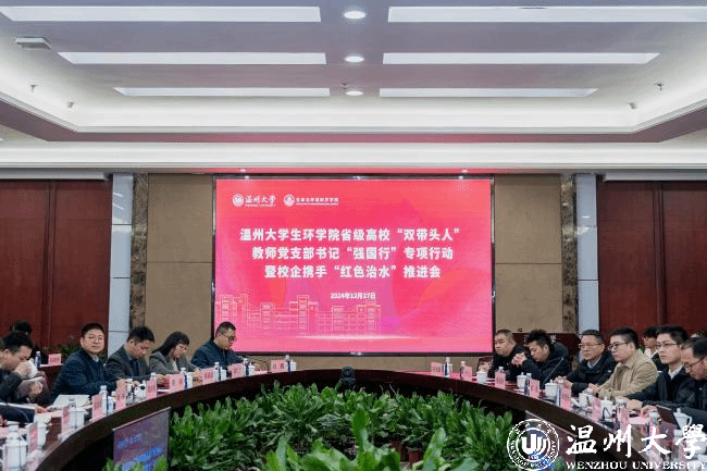 为进一步发挥党建引领的教师党支部示范作用,深化校企合作联学共建,将“红色力量”转化为高质量发展的“绿色引擎”,近日,开云网页版页面登录生环学院举行省级“双带头人”教师党支部书记“强国行”专项行动暨校企携手“红色治水”推进会。