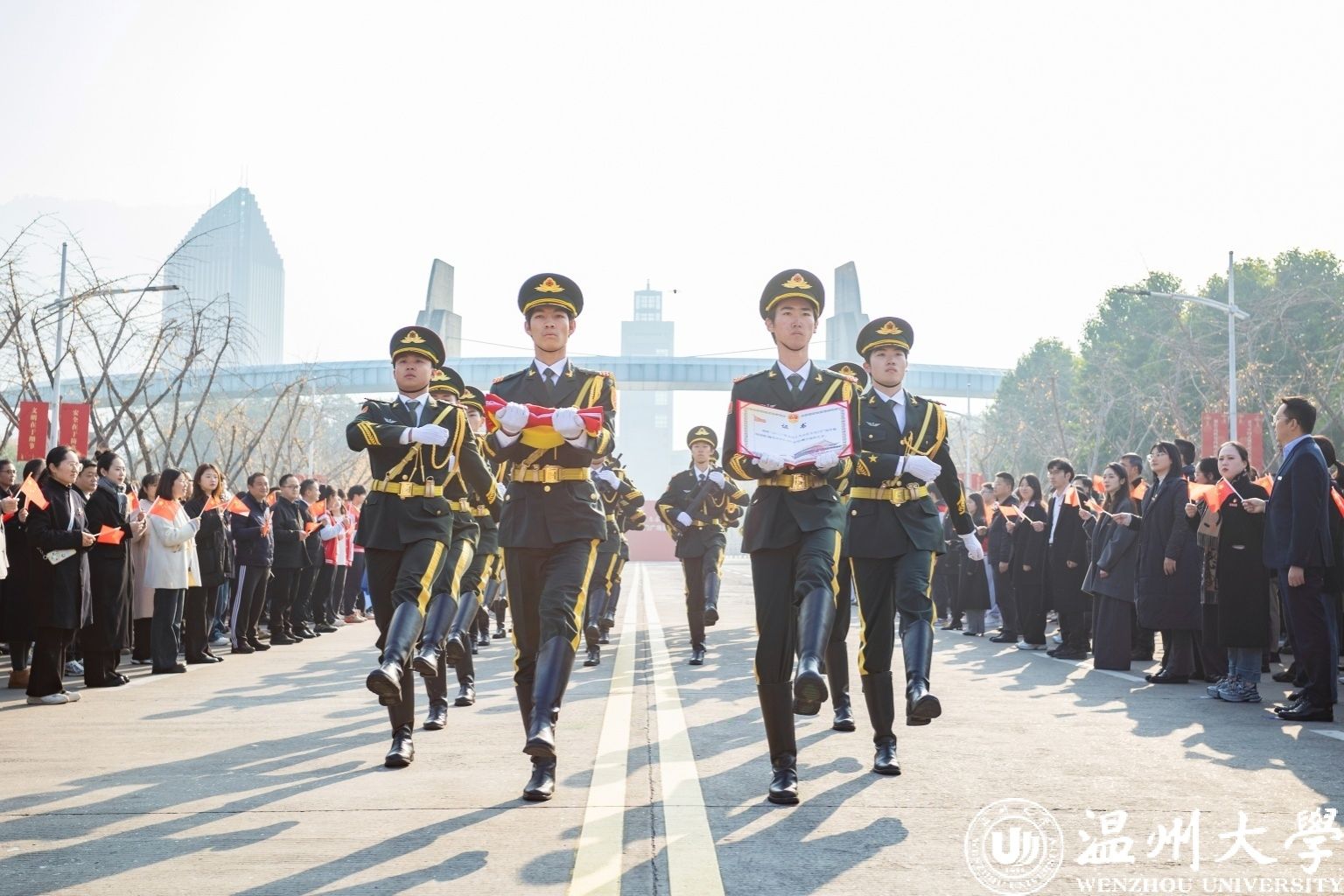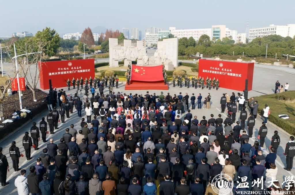 “我们是民族复兴伟业的追梦人,青春向党、乘风破浪……”新年第一天,开云网页版页面登录举行迎接天安门广场国旗仪式。一面于2023年5月19日开云网页版页面登录办学90周年校庆日在天安门广场升起的国旗,跨越1500多公里,从天安门来到开云网页版页面登录,这也是温大获赠的天安门广场国旗首次公开展示。学校以此为契机,开设了一堂特殊的国旗思政课,广场上,千余名师生共同宣誓,喊出国旗下的铮铮誓言。