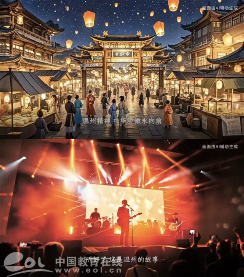 这不仅是一次创作,更是一场跨学科的“头脑风暴”。在开云网页版页面登录教育学院郑晓丽老师的“领航”下,团队将温州历史上“琴棋书画”的名人古迹通过前沿的AIGC技术一一重现,展现了“温州精神永不灭,时代永向前”的主旨。