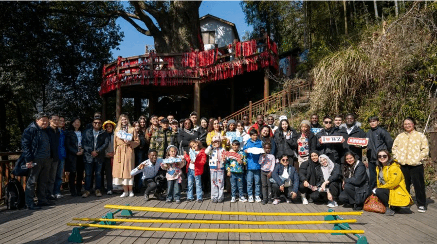 21日,温大留学生前往文成县西坑畲族镇让川民族村参加了一场别开生面的畲族民俗活动。留学生们在这里体验了拦路歌、竹竿舞、摇锅等传统畲族项目,深入了解了畲族文化的独特之处。同日下午,留学生们还游览了风景秀丽的百丈漈景区。他们的欢声笑语与畲族村民的热情好客交织在一起,共同谱写了一曲民族团结的和谐乐章。“我体验了这里的民俗活动,我最喜欢竹竿舞,我觉得非常新奇、有趣。畲族人民也特别友好。”来自伊朗的留学生诺莎莎,分享了自己的感受。