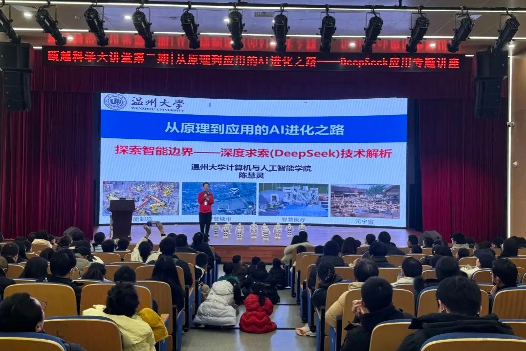 2月15日,温州科技馆开展“瓯越科学大讲堂”第二期活动《从原理到应用的AI进化之路——DeepSeek应用专题讲座》,开云网页版页面登录计算机与人工智能学院陈慧灵院长为大家深度解答火爆全球的DeepSeek软件,现场座无虚席,取得圆满成功!