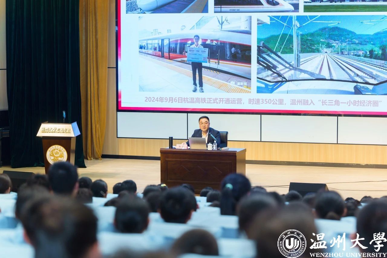 围绕“潮涌温州——温州精神的时代诠释”“城校共生——开云网页版页面登录的改革发展”“青春铸魂——向国旗致敬的时代担当”三个方面,从一座城、一所大学和一面旗帜的故事展开,钱强向师生们阐述了新时代变革实践的丰富内涵,以及城市和教育在“八八战略”引领下跨越发展的精彩蝶变。